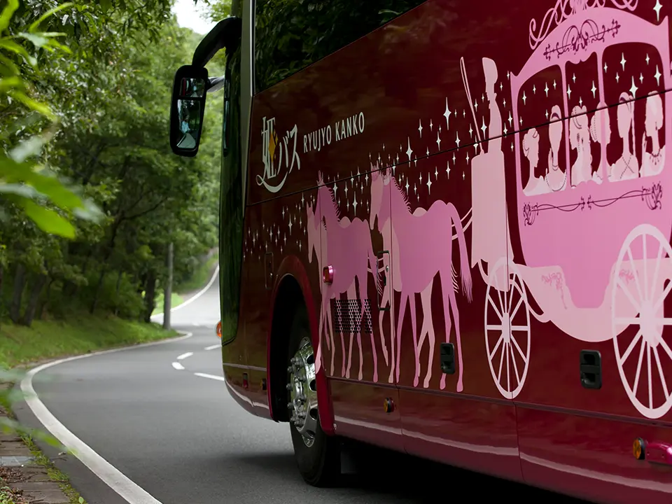 姫バスは女性向けをコンセプトに作られた特別仕様の大型貸切バスです。