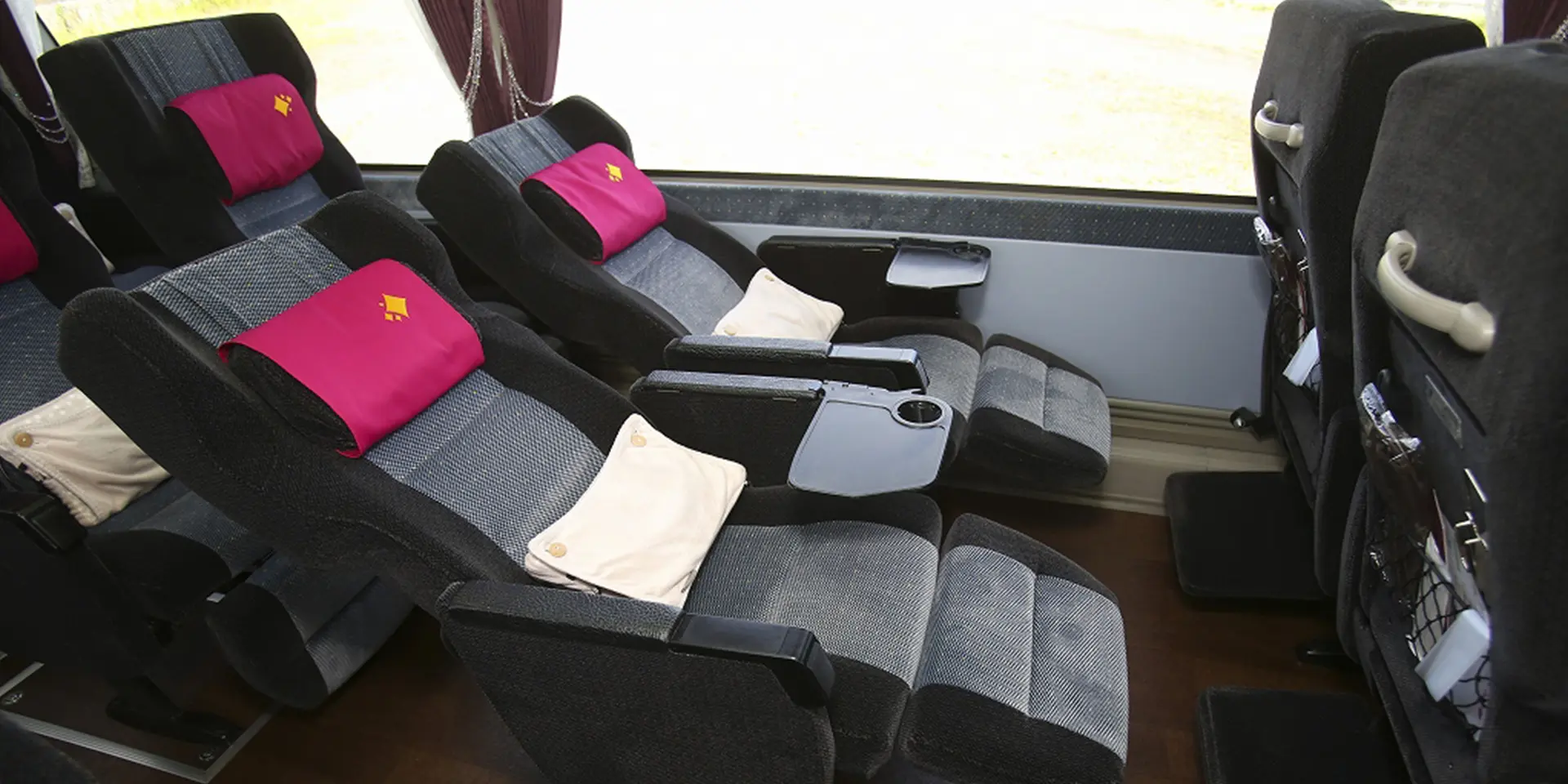 車内はラグジュアリーな特別仕様の大型貸切バスとなっており