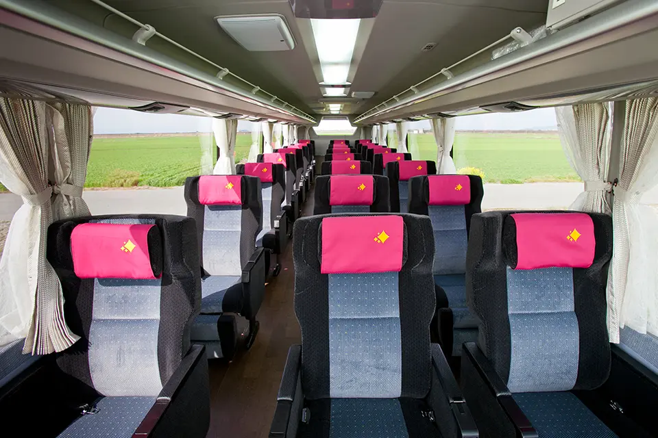 車内はラグジュアリーな特別仕様の大型貸切バスとなっており
