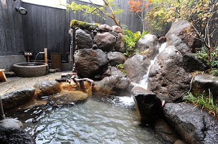 滝のように豪快に流れる源泉お露天風呂がオススメです♪