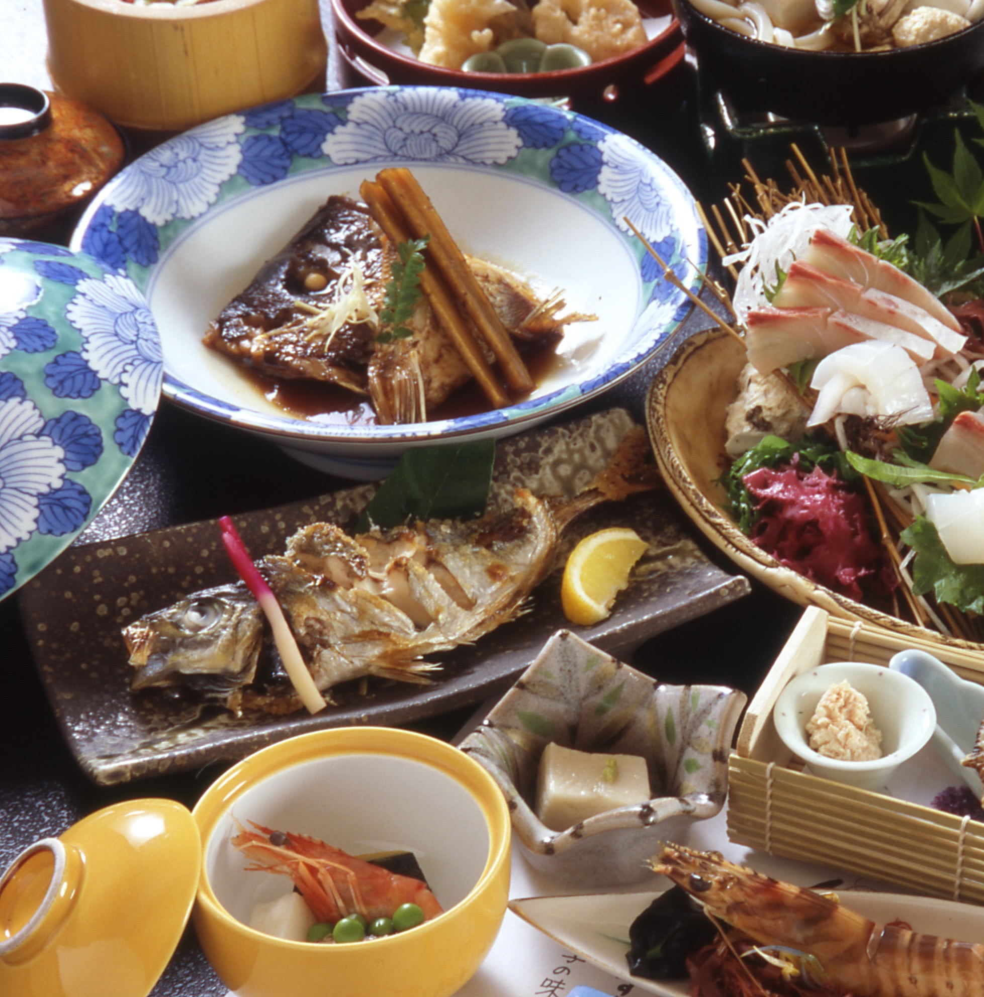 海を望む落ち着いた雰囲気の中で、四季折々の食材を生かした会席料理をどうぞ。